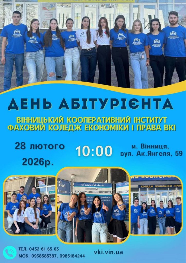 Фаховий коледж економіки і права Вінницького кооперативного інституту запрошує на навчання по завершенню 9 класів випускників на перший курс, 11 класу зарахування на другий курс та випускників ПТУ на третій курс: