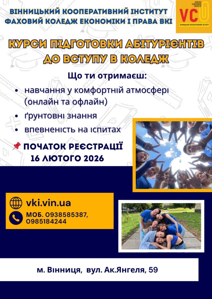 Стартуй до успішного вступу разом із нами! Фаховий коледж економіки і права ВКІ оголошує набір на курси підготовки до вступу.