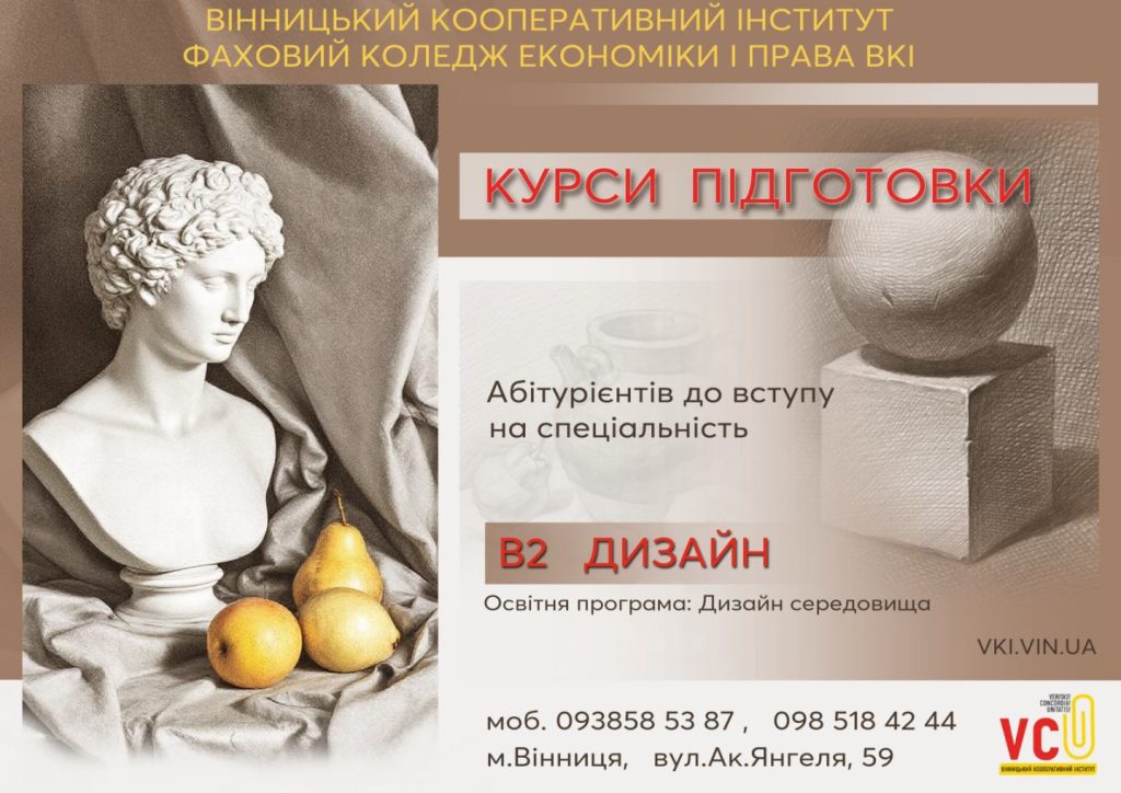 Запрошуємо на Курси підготовки абітурієнтів до вступу у Фаховий коледж економіки і права Вінницького кооперативного інституту на спеціальність В2 Дизайн (Освітня програма: Дизайн середовища).
