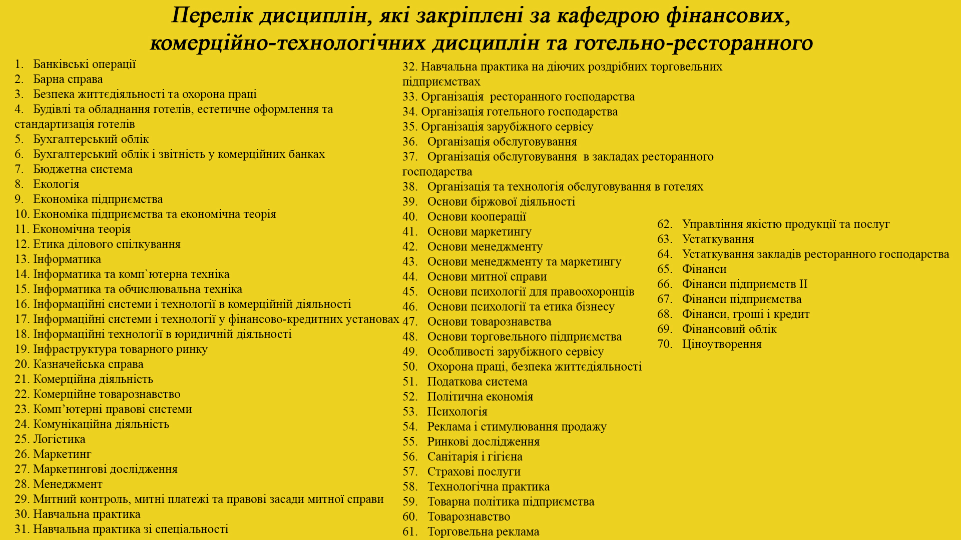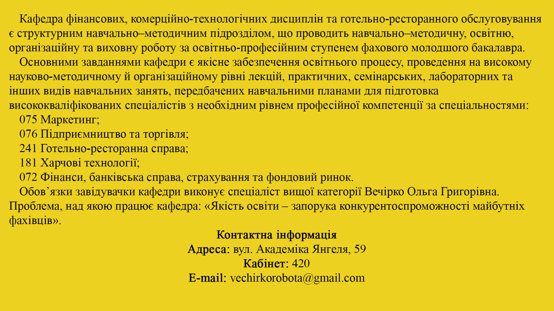 Кафедра фінансових, комерційно-технологічних дисциплін та готельно-ресторанного обслуговування
